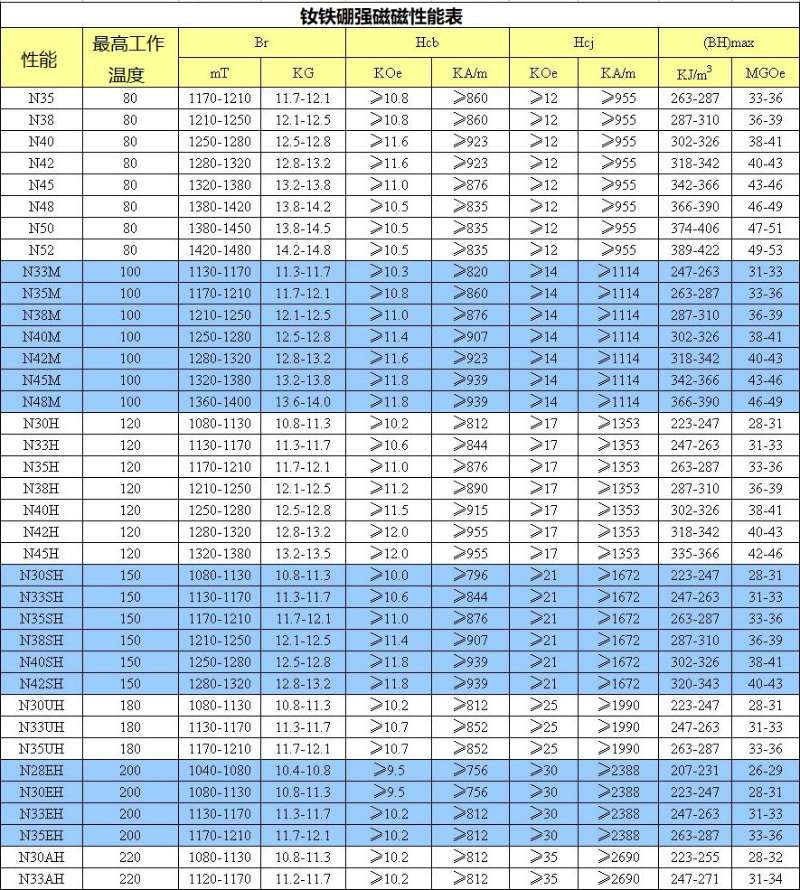 釹鐵硼磁鐵表征磁性材料參數(shù)分別是: