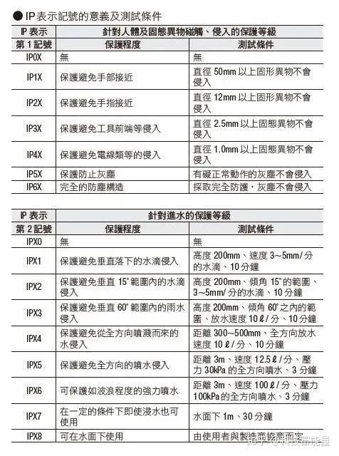 所以,如果你看到產(chǎn)品的標(biāo)示為IP67 ,其在防塵規(guī)格上等級(jí)為IP6x 防護(hù)級(jí)別,防水部分則是IPx7防水級(jí)別,大家一定要了解。