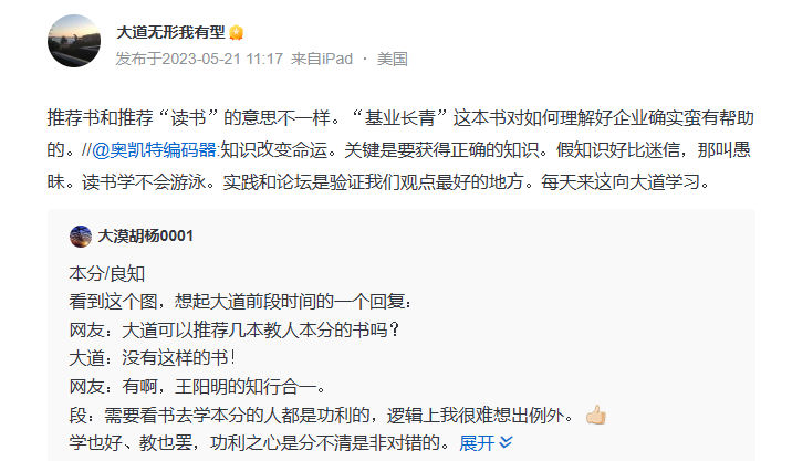 成功一次、兩次、三次、甚至十次,可能都有運氣成分,但持續(xù)成功、把失敗控制在可控范圍內(nèi)的段永平,一定是在“大道”的層面上看對了什么、做對了什么。